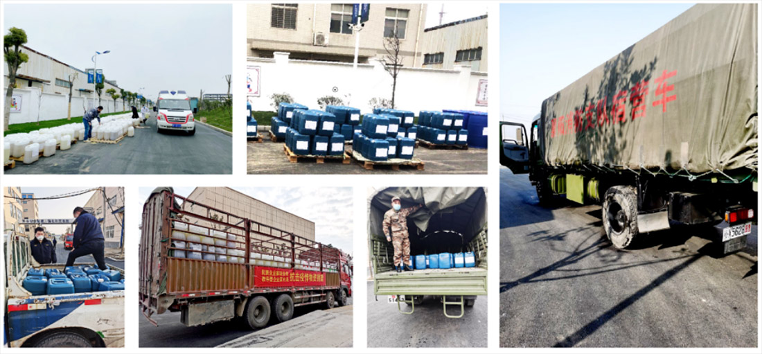 2020年年初新冠疫情全面爆發(fā),湖北又是全國的疫情中心。國難當(dāng)頭,董事長帶領(lǐng)金達(dá)成部分領(lǐng)導(dǎo)主動(dòng)請(qǐng)纓,勇?lián)厝?,面臨種種困難,發(fā)揮黨員沖鋒在前、迎難而上的作風(fēng),生產(chǎn)84消毒液原液三百余噸,市值達(dá)四百萬,全部無償捐贈(zèng)給疫情最需要的地方。